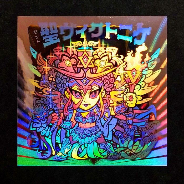 | ・素材:銀ホログラム(チェンジング) ・寸法:48×48mm ・裏書:あり ・備考:角度や光の向きによって絵柄が切り替わります。 ※包装用のヘッダーは付属しません。 |