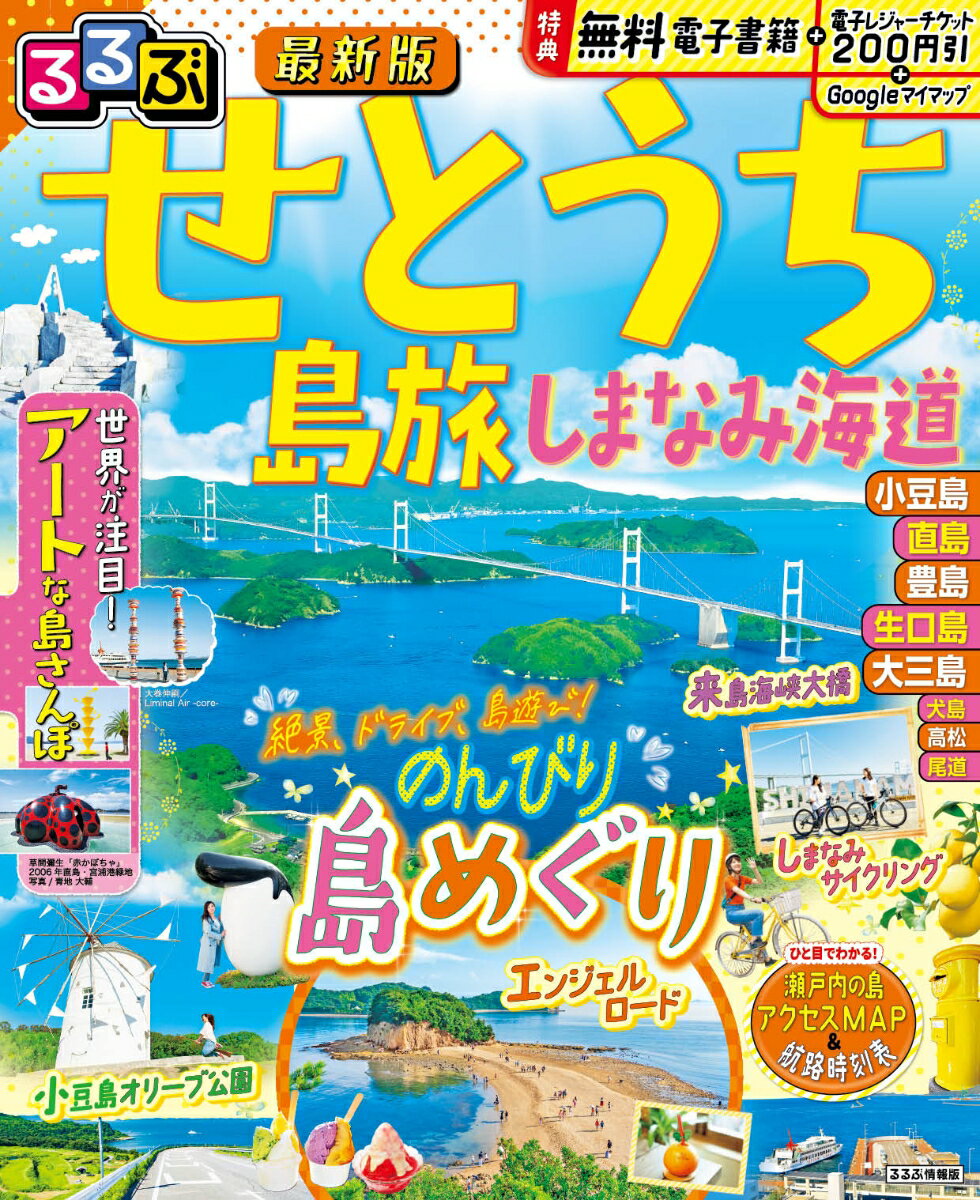 ◎スマホやタブレットで使える便利な電子書籍付き◎電子レジャーチケット「200円クーポン」でお得旅しまなみ海道や小豆島、直島など瀬戸内で人気の島々を完全ガイド。絶景からアート、グルメまで島旅の魅力満載です!便利な航路マップ&時刻表で離島プランニングもおまかせ。<主な特集内容>・瀬戸内の島々はやわかり・航路MAP/船の時刻表【巻頭特集1】 せとうち絶景・オーシャンビュー 亀老山展望公園、豊島・海へ飛び込む道 ほか・アートなフォトスポット 耕三寺博物館、小豆島オリーブ公園 ほか【巻頭特集2】 島旅モデルプラン・2泊3日せとうち島巡りプラン・1DAY島巡り【エリア特集】・しまなみ海道1DAYトリップ・しまなみ海道プチサイクリング・小豆島 絶景ドライブコース・アートな島々へ 直島/豊島/犬島/女木島/男木島・話題の島々&離島カタログ 安芸灘とびしま海道/周防大島・島への起点エリア案内 尾道/今治/岡山/高松/広島/呉/竹原etc.上記のほか、各エリアの名物グルメ、注目宿情報も満載です。【掲載エリア】 しまなみ海道、生口島、大三島、小豆島、直島、豊島、犬島、女木島、男木島、安芸灘とびしま街道、周防大島、尾道、今治、岡山、高松、広島、呉、竹原※200円クーポンの利用期間は図書の販売終了まで