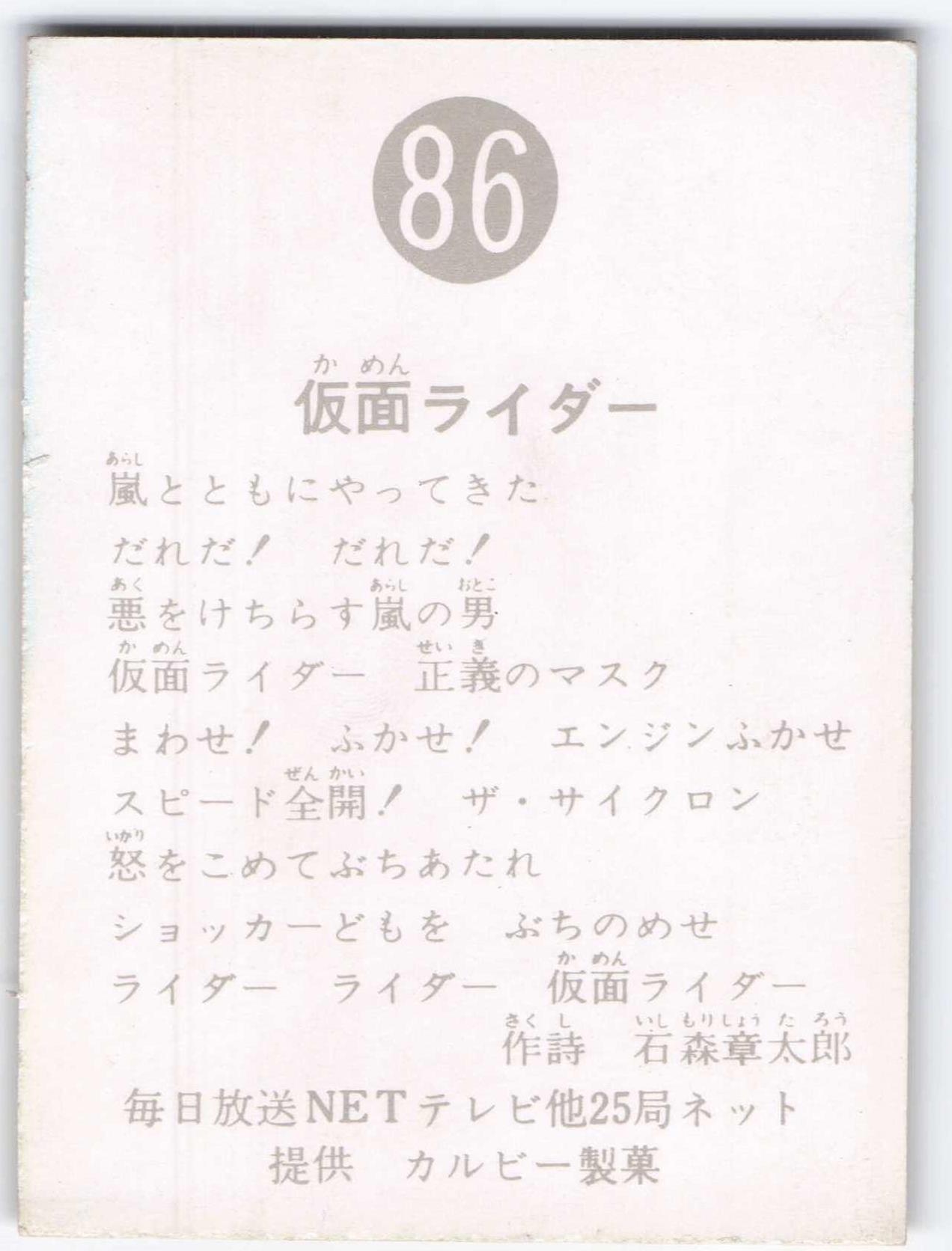カルビー製菓 【旧仮面ライダーカード】 明朝版 仮面ライダー 74