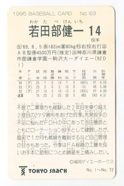 東京スナック(カルビー) 95年 第1ブロック 山本昌広 2