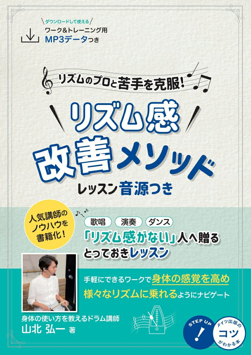 ★ 人気講師のノウハウを書籍化!!★ ダウンロードして使える 『ワーク&トレーニング用』 MP3データつき!★ 『歌唱』『演奏』『ダンス』 「リズム感がない」人へ贈る とっておきのレッスン。★ 手軽にできるワークで身体の感覚を高め 様々なリズムに乗れるようになるナビゲート。◇◆◇ 著者からのコメント ◇◆◇リズム感をよくするために必要なこととは何でしょうか?ヒントは「リズム感」という言葉の中にあります。「感」という文字がふくまれていますよね。つまり、リズムは「感じるもの」だということです。リズム感をよくするためには、感じ方を身につけることができればよいわけです。「リズム感がない」と思っている人は、感じ方をトレーニングする機会がこれまでになかっただけです。正しく練習すればリズムは誰でもよくなるということを、まずは信じていただきたいと思います。大切なのは、身体を上手に動かす「感覚」についての知識です。ここが難しいところで、多くの人がつまづく部分なのです。本書では、いままで聴こえなかったものが聴こえるようになる「知識」をお伝えします。知識があると音楽の聴こえ方が変わります。ぜひ心の底からリズムを楽しめるようになっていただきたいと思います。頭の中だけの知識ではなく「身体を動かすための知識」がたくさん出てきます。音に合わせて身体を動かすワークを多数用意しており、身体の使い方をトレーニングすることで「感覚」をやしなっていただける工夫を随所にこらしています。ワークの中ではつまづきやすいところを指摘したり、感覚をズバリ言語化していたりする箇所もあります。もしかしたら、自分が感じていることを言い当てられてドキッとされる方もいるかもしれません。それも感覚を新しくしていくために必要なことなので、ぜひ楽しんでいただけたらと思います。リズム感は必ずよくなります。ぜひ本書を活用し、新しい世界を広げていただけたらと思います。リズムの世界へようこそ!山北 弘一◇◆◇ 主な目次 ◇◆◇☆ 第1章リズム感がいい人とわるい人の違い☆ 第2章リズム感をよくするために必要なこと☆ 第3章リズムに強くなるメトロノームと手拍子練習法☆ 第4章リズムに強くなる身体の使い方☆ 第5章音楽的なリズム感を身につけよう