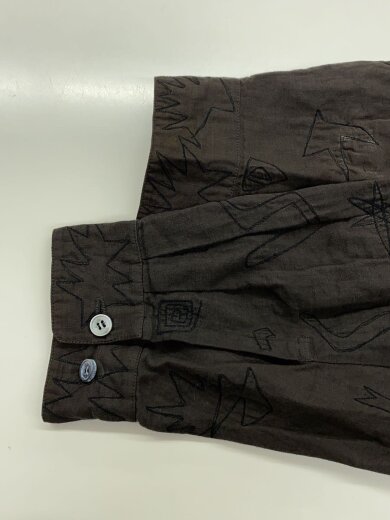 58 【graniph】 グラニフ 個性的 刺繍 長袖 シャツ M 緑 グリーン 総柄 エジプト 星 スフィンクス 月 綿100 コットン100 メンズ レディース