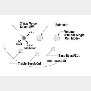 ボリューム・コントロールにはシングル・コイル・モードへの切り替え機能も備えた新開発のEQシステムです。(006P9Vアルカリ乾電池x1駆動)