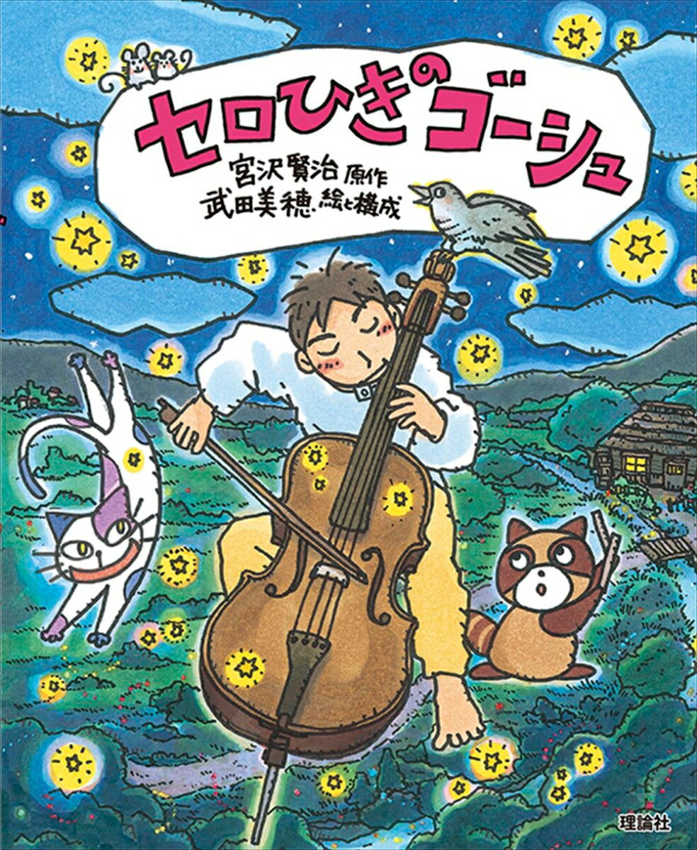 ゴーシュは楽団のセロ弾きですが、演奏がへたです。夜、家に帰って練習していると、ねこが入ってきて、音楽を聴かせてほしいと言います。しかし、むしゃくしゃしているゴーシュは、おそろしい曲を弾いて、ねこを追い払ってしまいました。つぎの夜は、かっこうがやってきて、ドレミファを教わりたいと言います。そのつぎの夜には、たぬきの子どもが、さらにつぎの夜は、ねずみの親子が・・・。そのたびに、ゴーシュは追い払おうとするのですが、動物たちといっしょに演奏しているうちに・・・。宮沢賢治の名作短編が親しみやすい絵本になりました。