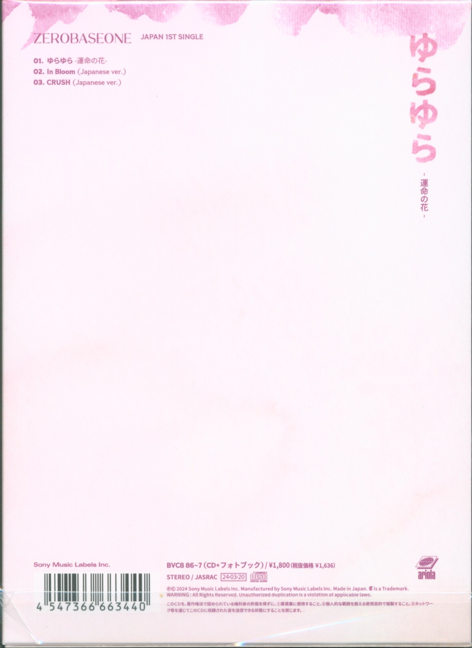 通常盤 (初回仕様) 応募抽選券他 ZEROBASEONE CD/ゆらゆら -運命の花- 24/3/20発売