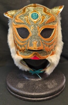 プロレスマスク ブシオ製【ミスティコ (白特殊×金ホロフチ)】Wサイン入り 初代・2代目 本人使用