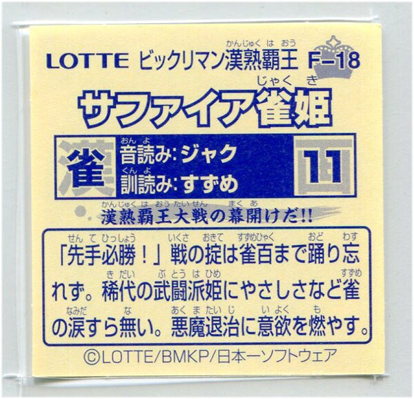 ロッテ ビックリマン漢熟覇王 1弾 純白のトウハク F-17