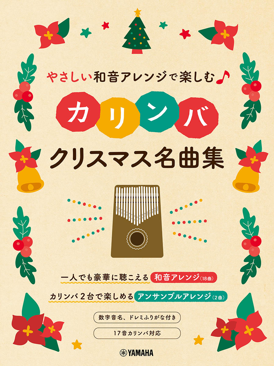 好評の「和音アレンジで楽しむカリンバ」シリーズにクリスマス編の登場です!誰もが知ってるクリスマスの定番曲から、一人でも豪華に聴こえる「メロディ+伴奏」の和音アレンジを18曲、イベントやサークルなどでも使いやすい2台のカリンバで演奏できるアンサンブルアレンジを2曲、計20曲収載しました(17音カリンバ対応)。和音アレンジは同シリーズと比べて少しやさしいアレンジになっているので取り組みやすく、クリスマスシーズン中に楽しむのにぴったりです!楽譜にはドレミふりがなに加え、楽器に刻印の数字音名も全曲掲載。楽器と照らし合わせながら気軽に演奏していただけます。冒頭には、カリンバの音名と五線の対応表、やさしい音楽の決まりごと、基本的なカリンバの弾き方解説ページも掲載しているので、楽譜初心者、楽器初心者の方でも安心! メロディ譜では物足りない、自分で和音をつけるのに苦労している、という方にもおススメの1冊です♪シリーズ同様に心地よい響きが好評のAya【カリンバミント】、なまけるヤルキモノ、2名による和音アレンジでカリンバ演奏を存分にお楽しみください!■この本の特徴♪17音カリンバ対応の和音アレンジ譜を18曲掲載〜一人でも豪華に聴こえる「メロディ+伴奏」の和音アレンジが楽しめる!♪カリンバ2台で楽しめるアンサンブル譜を2曲収載〜カリンバサークルやクリスマスパーティなどのイベントでも活用できる!♪17音カリンバの音名を全曲表記〜ドレミふりがな+多くの17音カリンバの鍵に刻印されている「1」「2」などの数字音名を全曲対応!♪片手で和音を弾く箇所が視覚的にわかる!〜片手で同時に弾く2和音にはカギ表記、3和音以上にはアルペジオ表記を楽譜と数字音名両方に掲載。視覚的に分かりやすい仕様になっています。