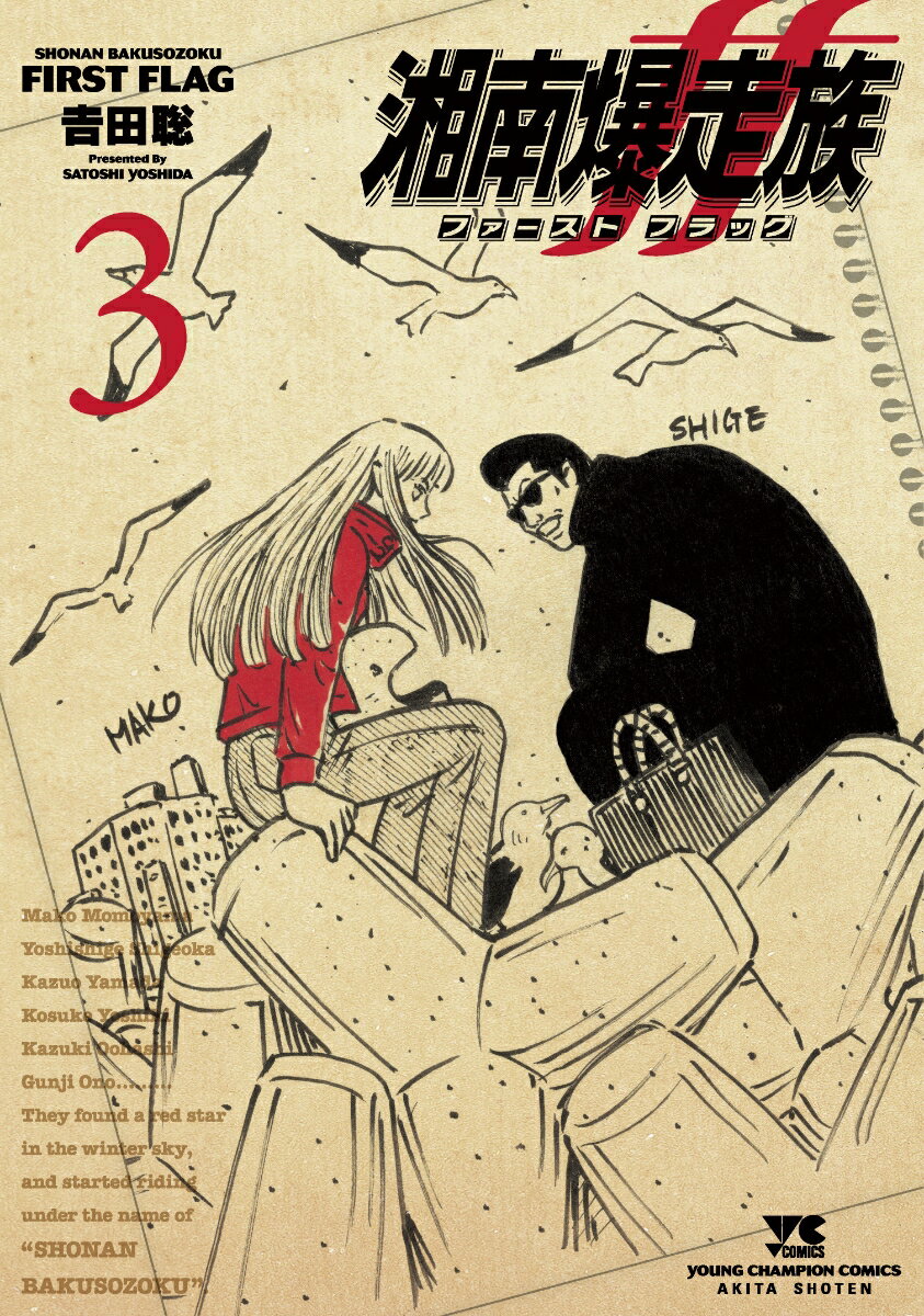 1979年暮れ。熱くなることを探していたシゲこと茂岡は「ひたすら真っ直ぐに」を合言葉に単車のチーム結成を決意。そこらの「族」とは違うものにしようと悪名を捨て、メンバーをポスターで募集し始める。そして年が明けた1980年1月。12月の終業式の日に江ノ電で偶然、桃山マコと2回目の出会いを果たすもバッグで引っぱたかれたシゲの耳に、白マッハを駆る「白煙の女王」が桃山マコではないかとの噂が。同一人物とは信じられないシゲだったが鎌倉山の山道で白マッハ=桃山マコと3回目の遭遇、そして見事にぶっちぎられてしまう。初めて目の当たりにしたマコの激走に、シゲはチーム結成活動をヨソにマコとの再戦へと動き出す!単車を通じてマコとシゲふたりが互いを認識し始め、そして伝説のチームを支えたメンバーたちが集まり出す第3巻!!カッコいいだけでは走れない。熱いだけでは手を握れない。強いだけでは集えない。大人への階段の踊り場で、夢・葛藤・友情…言葉にならない衝動を抱えまくったヤツらの想いと歴史が誕生した瞬間を描き出す『湘南爆走族』の最新作。70's〜80'sの"昭和"を背景に江口洋助ら2代目へとバトンを繋いだマコやシゲら初代を綴る、湘爆誕生40周年&吉田聡画業40周年を飾る不朽の"青春漫画"さらに加速!!【湘南爆走族】ロックンロールを胸に紫の道路を駆け抜ける"湘南爆走族"江口洋助ら高校生たちの3年間を描いた吉田聡のデビュー作品。1982年に読み切りで初登場、1983年から連載開始。大ヒットを記録し累計部数は2900万部を超え社会現象を巻き起こし熱狂的なファンを生んだ。それまでの「番長」から新たな「不良」の姿を描き、そこから紡がれるハートや秀逸なギャグで後の漫画家たちにも多大な影響を及ぼした不朽の名作。数多くのオマージュを生んだ事からヤンキー漫画と称される事も多いが暴走族に特化して描かれた物語ではなく、全力で3年間を過ごす高校生たちを綴った、『湘爆』は完全なる青春漫画なのである。