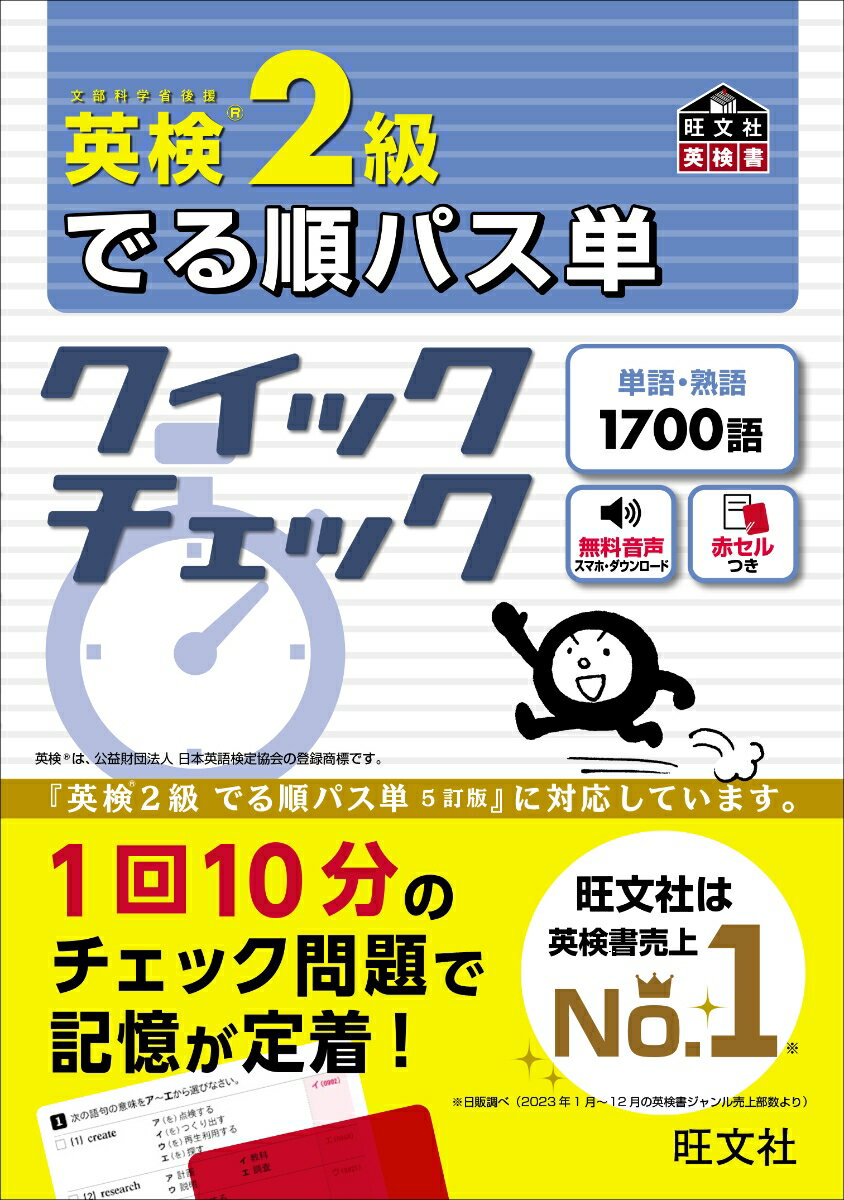 『英検2級 でる順パス単[5訂版]』に収録された単熟語を「解いて覚える」ためのチェック問題集!本書の特長【1】 1回10分のチェック問題で気軽に取り組める【2】 さまざまな問題形式で多角的に単熟語を学習できる【3】 英検形式の問題で実戦的な力もつけることができるただ単語集を見てそのままにしておくのではなく,学習した単熟語を使って問題を解くことで,記憶を長期的に定着させることができます!※本書の音声は、公式アプリ「英語の友」でお聞きいただけます。詳しくは、公式サイト(https://eigonotomo.com/)をご覧ください。はじめに本書の構成音声について■単語編でる度A 常にでる基本単語 500Section 1-5英検形式にチャレンジ!でる度B よくでる重要単語 400Section 6-9熟語編英検形式にチャレンジ!でる度C 差がつく応用単語 400Section 10-13英検形式にチャレンジ!■熟語編でる度A よくでる重要熟語 200Section 14-15英検形式にチャレンジ!でる度B 差がつく応用熟語 200Section 16-17英検形式にチャレンジ!