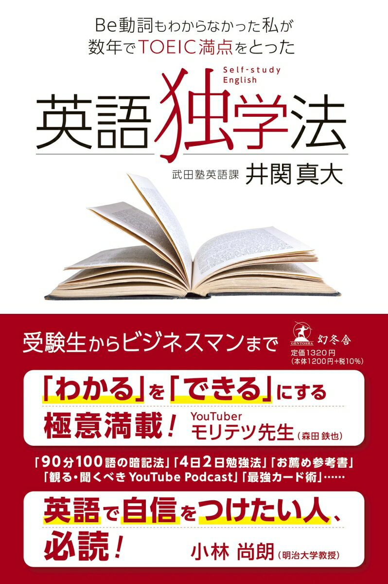 【「わかる」を「できる」にする極意満載!…森田哲也(YouTuber)】【「自信」が手に入る一冊!…小林尚朗(明治大学教授)】受験生からビジネスマンまで!「90分100語暗記法」など、本気になった人へ著者は、武田塾英語課の井関真大さん。Be動詞もわからなかった地点から、数年で、TOEIC990点、英検1級合格までたどり着いた「独学法」のすべてを明かします。■参考書はどれを使えばよいのか?■まず、何から始めればよいのか?■モチベーションの保ち方は?■単語を覚えるには?■単語カードの驚くべき使い方とは?■英語学習に便利なアプリとは?■観るべきYouTubeとは? など、超・実戦的な英語独学法を網羅します。3日で上達する……そんな魔法はない、と著者は言い切ります。この本はけっしてやさしい内容ではありません。ですが、レベルアップしたい学生、社会人にとって、本物の力がつく内容が詰まっています。