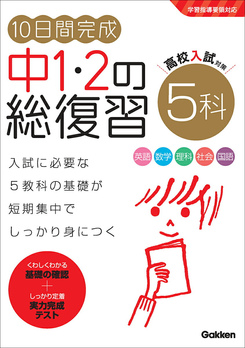 高校入試対策はこの1冊から! 入試に必要な基礎力が短期集中でしっかり身につく! 大人気シリーズ5教科版! [本書の特長]【1】短期集中! 10日間の日割り式1日分、各教科2ページ。短期間で、中学1・2年の要点を総復習できます。日割り式なので、計画的に学習を進められます。【2】実力がつく2ステップ式1日分は「基礎の確認」と「実力完成テスト」の2つのステップで構成されています。Step1「基礎の確認」テーマ別の確認問題を解き、各項目を基礎から総点検します。弱点の発見に役立ちます。Step2「実力完成テスト」制限時間・配点ありのテスト形式で、Step1で学んだ内容が身についているか試してみましょう。【3】5教科まとめて総復習英数理社国、この1冊で5教科まとめて復習することができます。