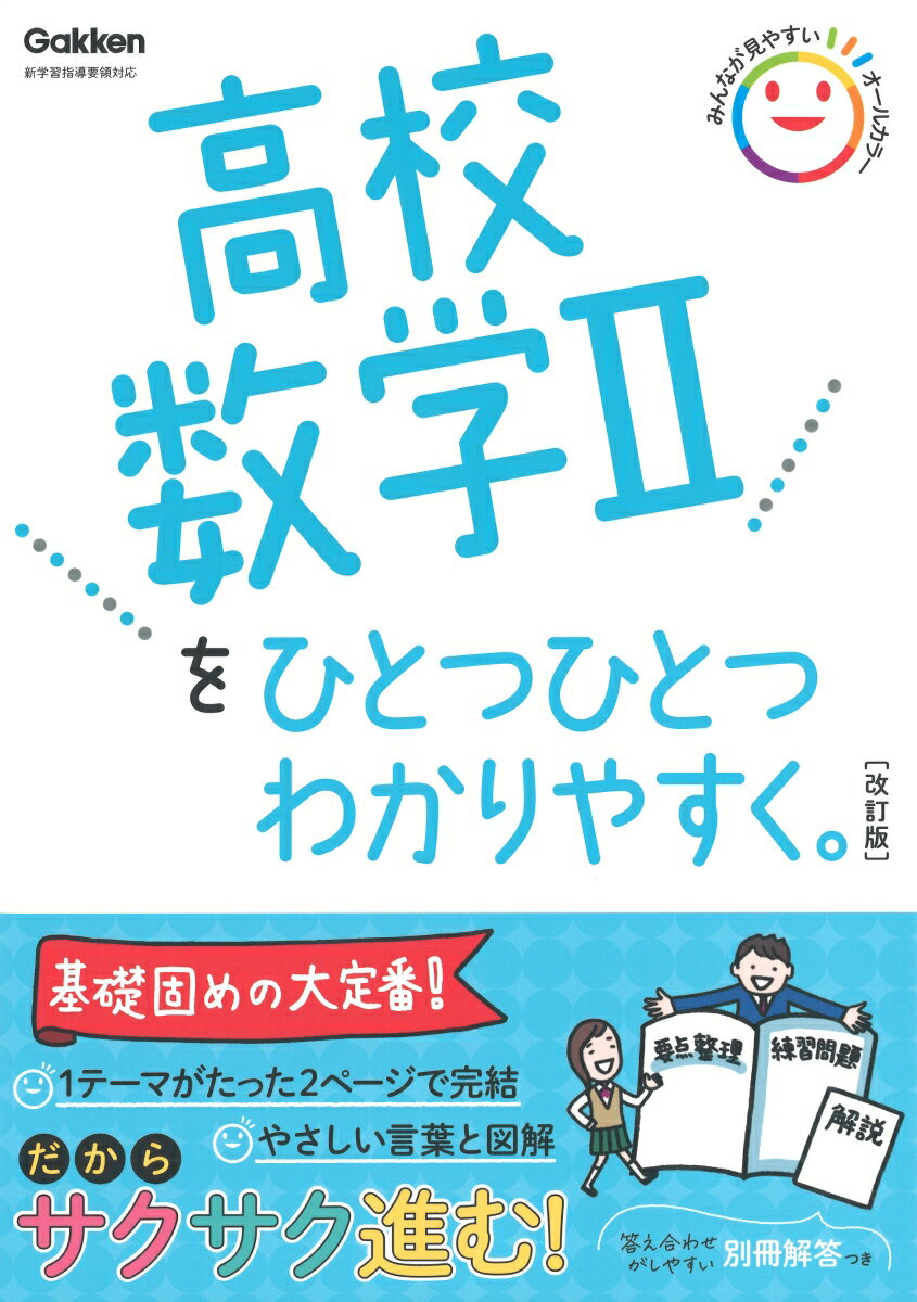 ★ご確認ください★こちらの商品は2022年度以降にご入学された方が対象の商品です。2021年度以前にご入学の方は2021年度1月以前に発売している旧版商品をお買い求めください。「数学のテストでなんだか点が上がらない」「高校に入ってから数学がわからない…」そんな声にこたえた高校生のための個人授業「ひとつひとつわかりやすく。」シリーズ。高校数学を超基礎レベルからやさしく解説。少しずつ、効率よく学べるようにわかりやすい解説(左ページ)+書き込み式の練習問題(右ページ)が見開きで勉強できる。参考書としても問題集としても使える。高校生の予習・復習はもちろん、社会人の学び直しにも大活躍。●●高校数学2の改訂ポイント●●・オールカラー化で、図解やイラストがもっとみやすく、もっとわかりやすく。・別冊解答は問題ページのレイアウトそのまま、解答を入れた再録式! ラクラク答え合わせできます。〇〇高校数学2をひとつひとつわかりやすく。改訂版のおすすめポイント〇〇●超基礎からやさしく学べる難しい用語をできるだけ避けて、わかりやすい文章と図で解説しています。1回分はたったの2ページ。数学がニガテな人や、ほかの 参考書 や 問題集 では少し難しいと感じる人でもこの本なら大丈夫です。高校入学準備にもぴったり。●数学力の土台をつくる工夫がいっぱい穴埋め の解説で基礎を理解したあと 書き込み式 の練習問題を解くことで、理解した内容をしっかり定着。数学の「なぜ? 」をわかりやすく解説しているので、理解が深まります。