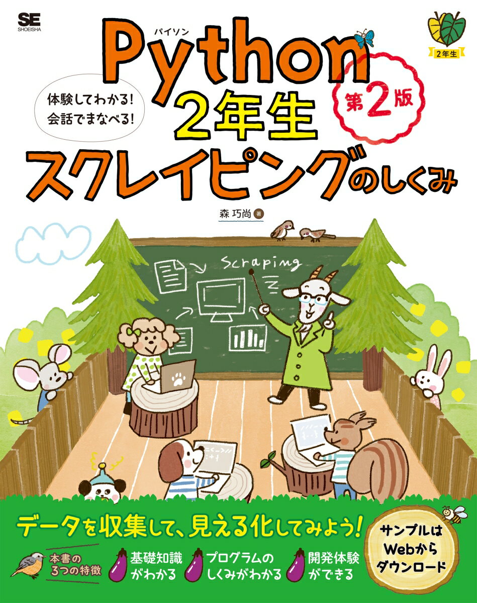 Python 2年生 スクレイピングのしくみ 体験してわかる! 会話でまなべる! 森巧尚 パイソン 入門 基礎 プログラミング データ収集 二年生
