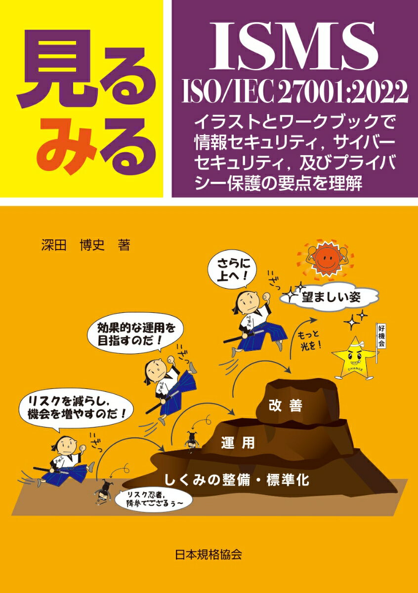 本書はISMS(ISO/IEC 27001:2022)の入門書です。特に内部監査員,推進委員,実務担当者に理解を深めていただきたい“重要ポイト”をぎゅっと抜粋し,見るみるISMSモデル,見るみるISMS流ー附属書A小分類,要点解説,イラスト,ミニワークブックを特長としています■第1章 ISO/IEC 27001とは,リスク・機会とはISO/IEC 27001,情報セキュリティ,リスクマネジメントの基本事項■第2章 見るみるISMSモデルISO/IEC 27001のPDCAサイクルを図式化した,“見るみるISMSモデル”,を収録.また附属書Aの管理策を著者がざっくり分類した“見るみるISMS流ー附属書A小分類”で管理策を大づかみ■第3章 ISO/IEC 27001本体の重要ポイントISO/IEC 27001の本体(箇条4〜10)の重要ポイントを要点解説とイラストで理解■第4章 担当者の情報セキュリティ管理策ーミニワークブック実務担当者に留意いただきたい確認項目をミニワークブックでチェック!■第5章 附属書A(規定) 情報セキュリティ管理策の重要ポイントISO/IEC 27001の附属書A(箇条5〜8)の重要ポイントを要点解説とイラストで理解■見るみるISO・JISシリーズとは?・マネジメントシステム規格に関するイラストが豊富な入門書です![特徴]1見るみるモデルで全体像を把握2イラストでイメージを理解3シンプルな要点解説4ワークブックでいざ実践※一人で見るみる,みんなで見るみる,社内勉強会などにご活用ください.[見るみるISO・JISシリーズ]1見るみるISO 9001-イラストとワークブックで要点を理解2見るみるISO 14001-イラストとワークブックで要点を理解3見るみるISMS ISO/IEC 27001:2022-イラストとワークブックで情報セキュリティ,サイバーセキュリティ,プライバシー保護の要点を理解4見るみるJIS Q 15001:2023・プライバシーマークーイラストとワークブックで個人情報保護マネジメントシステムの要点を理解5見るみる 食品安全・HACCP・FSSC 22000-イラストとワークブックで要点を理解6見るみるBCP・事業継続マネジメント・ISO 22301-イラストとワークブックで事業継続計画の策定,運用,復旧,改善の要点を理解第1章 ISO/IEC 27001 とは,リスク・機会とは第2章 見るみるISMS モデル第3章 ISO/IEC 27001 本体の重要ポイント第4章 担当者の情報セキュリティ管理策 ミニワークブック第5章 附属書A(規定) 情報セキュリティ管理策の重要ポイント