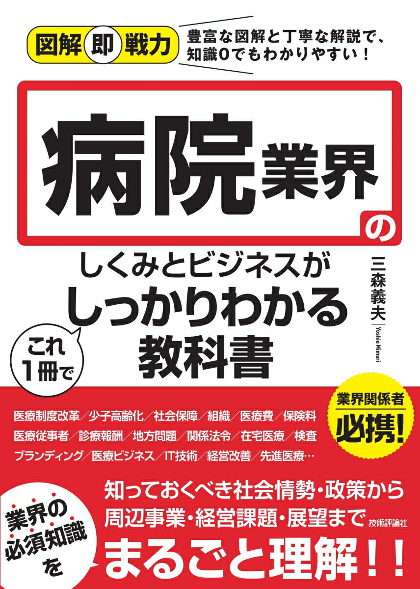 社会の変容による影響は自治体病院をはじめとした地域医療の現場にも及んでおり、高齢化による社会保障費の圧迫や赤字経営となる病院の増加などの課題が多く発生しています。加えて、全国的な医師不足や高齢化社会後の医療需要の低下といった将来的懸念も生じており、医療体制は大きく変化しようとしています。しかしながら、こうした問題を抱えてなお国家財政からの支出規模、先端技術の市場規模、労働従事者の数といった点で病院に関わる医療事業の規模は非常に大きなものであるといえます。独特な制度や慣習も多い業界ですが、本書でそのしくみと事業内容がわかります。