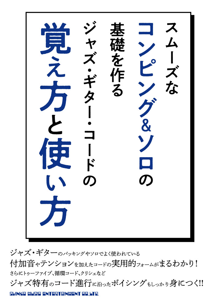 1:■【Introduction】 2:<ジャズ・コードの基礎知識> 3:1.コード・トーンを表わす度数の意味 4:2.コードの基本構造を知ろう 5:3.ボイシングの分類 6:4.ガイド・トーンとは 7:5.テンション・コードについて 8:6.オン・コードとポリ・コード 9:7.コードの機能と代理コード 10:8.代表的なコード進行 11:■【Chapter 1】 12:<コード進行の基盤となる4種類のコード> 13:1.メジャーセブンス・コード 14:2.セブンス・コード 15:3.マイナー・セブンス・コード 16:4.マイナー・セブンス・フラットファイブ・コード 17:■【Chapter 2】 18:<基本コードのバリエーション> 19:1.シックス・コード 20:2.マイナー・シックス・コード 21:3.マイナーメジャーセブンス・コード 22:4.オーグメントセブンス・コード/セブンス・シャープファイブ・コード 23:5.セブンス・フラットファイブ・コード 24:6.ディミニッシュ・コード 25:■【Chapter 3】 26:<ナチュラル・テンションを含むコード> 27:1.メジャーナインス・コード 28:2.メジャーサーティーンス・コード 29:3.シックスナインス・コード 30:4.ナインス・コード 31:5.サーティーンス・コード 32:6.マイナーナインス・コード 33:7.マイナーシックスナインス・コード 34:8.マイナーメジャーナインス・コード 35:9.マイナーイレブンス・コード 36:10.マイナーナインス・フラットファイブ・コード 37:11.マイナーイレブンス・フラットファブ・コード 38:■【Chapter 4】 39:<オルタード・テンションを含むコード> 40:1.メジャーシャープイレブンス・コード 41:2.シックスシャープイレブンス・コード 42:3.フラットナインス・コード 43:4.シャープナインス・コード 44:5.シャープイレブンス・コード 45:6.フラットサーティーンス・コード 46:7.マイナーフラットサーティーンス・フラットファイブコード 47:■【Chapter 5】 48:<複数のテンションを含むコード> 49:1.メジャーナインス・シャープイレブンス・コード 50:2.メジャーナインス・サーティーンス・コード 51:3.シックスナインス・シャープイレブンス・コード 52:4.ナインス・シャープイレブンス・コード 53:5.ナインス・サーティーンス・コード 54:6.フラットナインス・フラットサーティーンス・コード 55:7.シャープナインス・フラットサーティーンス・コード 56:8.マイナーナインス・イレブンス・コード 57:■【Chapter 6】 58:<知っておきたいコードのバリエーション> 59:1.複数のテンションを含むセブンス系コードのバリエーション 60:2.複数のテンションを含むマイナー系コードのバリエーション 61:3.ディミニッシュ・コードのテンション 62:4.4thインターバル・ビルド 63:5.モーダル・ハーモニー