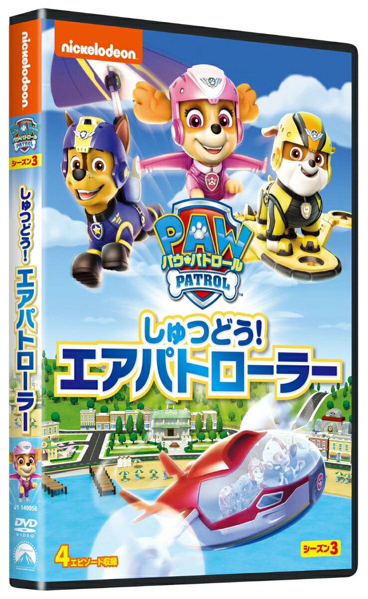 今度のパウ・パトロールは空を飛ぶ!空飛ぶ新しい基地、エアパトローラーが登場!新しい仲間も増えて、どんなトラブルもパウっと解決!◆世界160カ国以上で放送されている大人気3DCGアニメ。子犬たちと少年が大活躍する“レスキュー・アクション・アドベンチャー”!少年ケントとかわいい7子犬たち“パウ・パトロール”が消防車やブルドーザーを操り、力を合わせて街のトラブルを解決!楽しいおもちゃやグッズが続々発売。小学館の絵本も大人気。◆シーズン3も新しい仲間やガジェットが登場!ジャングルクルーザーを乗りこなす、チワワの男の子トラッカーが仲間入り。そして、空飛ぶ新しい基地、エアパトローラーが登場。ジェットパックを身に着ければ、空からのレスキューが可能に。ますますパワーアップしたパウ・パトロールなら、どんなトラブルもパウっと解決!◆パウパトのチームワークの秘密を見つけよう!DVDならいつでも好きなエピソードを楽しめる!一番好きなキャラクターは誰かな?繰り返し見てチームワークの秘密をチェックしてみよう。◆英語音声も収録され、お子様の英語への興味を育てるのにも最適!好きな作品を何度も見る子供たちにオリジナルの英会話を聞かせれば、英語への興味を深め知育にも役立ちます。*日本語字幕は収録されておりません<収録内容>【Disc】:DVD1枚・画面サイズ:16:9HD・サイズ・音声:1: 英 5.1ch Dolby Digital 2: 日 2chステレオ Dolby Digital・しゅつどう!ミニ・パトロール・アレックスのはがぬけた!・しゅつどう!エアパトローラー・ともだちきねんび※収録内容は変更となる場合がございます。