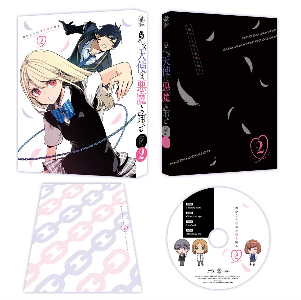 その日俺が出会ったのは、悪魔のような、天使だったーー。電撃マオウ(KADOKAWA刊)にて連載中!新感覚“ハラグロラブコメ”がTVアニメ化!★「電撃マオウ」連載の人気ラブコメコミックが待望のTVアニメ化!「電撃マオウ」(KADOKAWA刊)で連載中の人気ラブコメコミック「愚かな天使は悪魔と踊る」(著:アズマサワヨシ)が2024年1月よりTVアニメ放送開始!天界からの攻勢に抗うために、魔界を鼓舞するカリスマとなりうる人間をスカウトしに人間界へとやってきた悪魔「阿久津雅虎」が出会ったのは、可憐な美少女「天音リリー」。しかしリリーの正体は悪魔の天敵「天使」で...!?魔界を守るためにリリーを堕天させようとする阿久津と、とある目的のために阿久津を更生させようとするリリー。天使と悪魔の「オトしあい」バトルが開幕!!★実力派スタッフ陣が、ラブコメシーンからバトルシーンまで原作の魅力を見事に映像化!監督・シリーズ構成に「組長娘と世話係」など数多くの作品を手掛けるベテラン・川崎逸朗を起用!また、キャラクターデザインに「かぐや様は告らせたい」シリーズの八尋裕子、総作画監督に「組長娘と世話係」の増田俊介など実力派スタッフが集結!さらにアニメーション制作は、「組長娘と世話係」のGAINAと、「異世界食堂」のChildren's Playground Entertainmentが共同で手掛ける!実力派スタッフ陣が、可愛さあふれるラブコメシーンから迫力のバトルシーンまで見事に映像化!★大人気声優陣が、魅力的なキャラクターたちを楽しく賑やかに演じきる!人間界にやってきて、リリーを堕天させようと奮闘する悪魔・阿久津雅虎を演じるのは、「ブルーロック」御影玲王役の内田雄馬!普段は猫をかぶっているが、実はハラグロな性格の美少女天使・天音リリーを演じるのは、「わたしの幸せな結婚」斎森香耶役の佐倉綾音!また、阿久津の友人で、草食系男子な見た目に反して時折ダークサイドが顔を覗かせる谷川裕也役に、「ゾン100〜ゾンビになるまでにしたい100のこと〜」天道輝役の梅田修一朗、同じく阿久津の友人で、かわいい子を見たら告白しまくり&フラれまくりなお調子者広田健作役に、「東京リベンジャーズ」羽宮一虎役の土岐隼一を起用!さらに、健作の幼なじみ(自称彼女)であり、恋敵(?)であるリリーにライバル心を燃やす棚橋夕香役に、「ゆるキャン△」志摩リン役の東山奈央、魔界での阿久津の上司で、無自覚のコスプレマニアであるリズ役に、特徴的な声質で数々の作品に出演するベテラン・釘宮理恵など豪華キャストが集結!大人気声優陣が、魅力的なキャラクターたちを楽しく、賑やかに演じきる!★原作・アズマサワヨシ描き下ろしBOXに特製ブックレットなど豪華特典満載!各巻には原作・アズマサワヨシ描き下ろしBOXに加え、貴重な設定資料などを収録した特製ブックレットが付属!<収録内容>第5話〜第8話※収録内容は変更となる場合がございます。