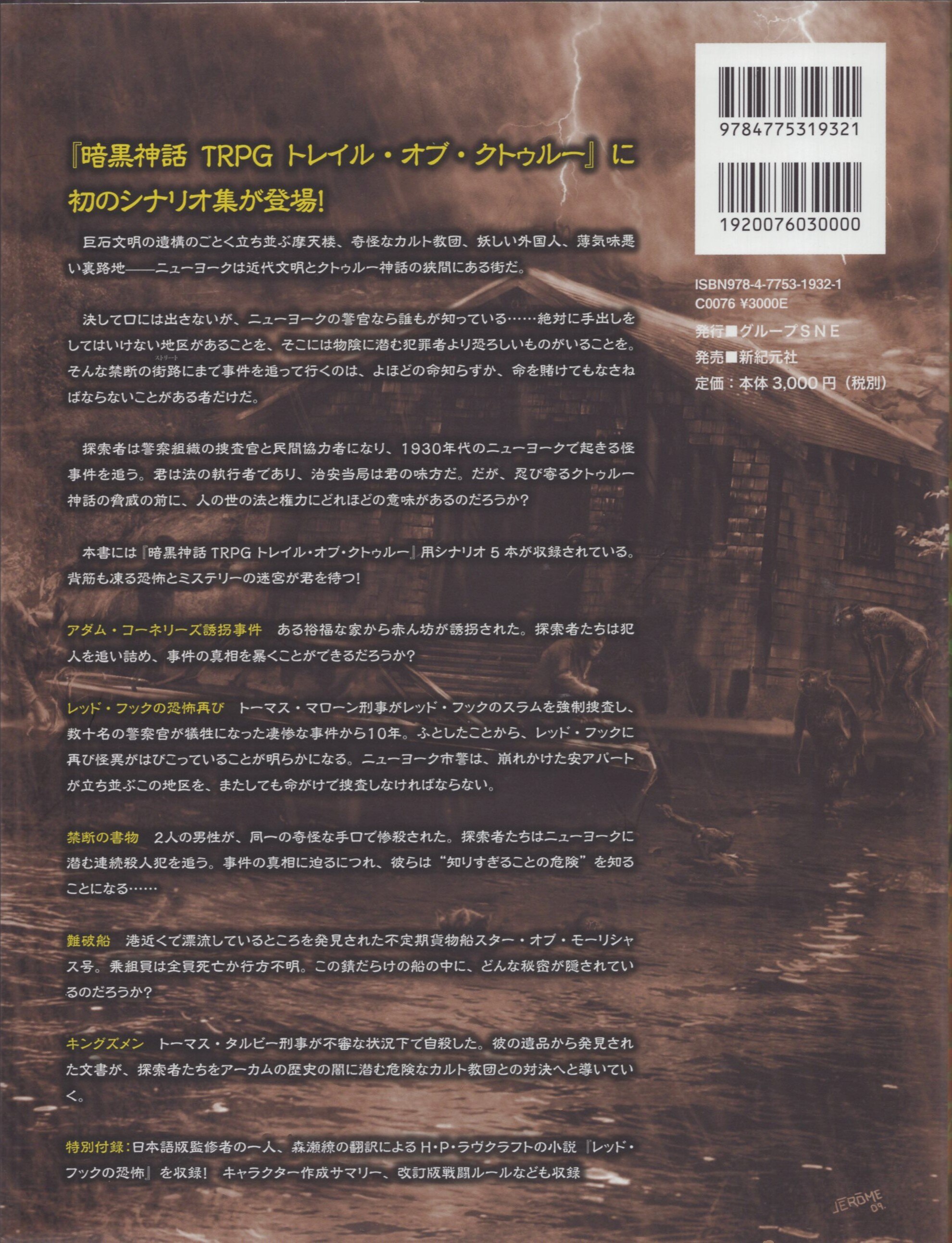 新紀元社 暗黒神話TRPGサプリメント グループSNE !!)トレイル・オブ・クトゥルー・ジャパン
