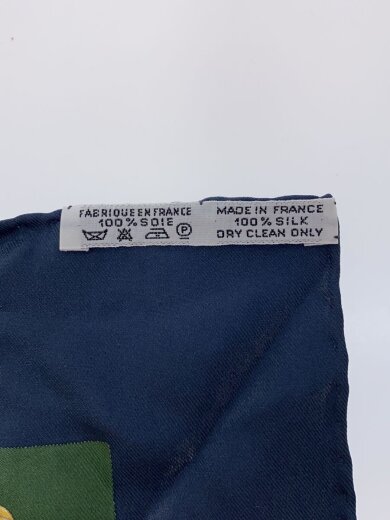 美品 HERMES カレ45 スカーフ カバ ネイビー系 シルク エルメス プチカレ ハンカチ 総柄 かば