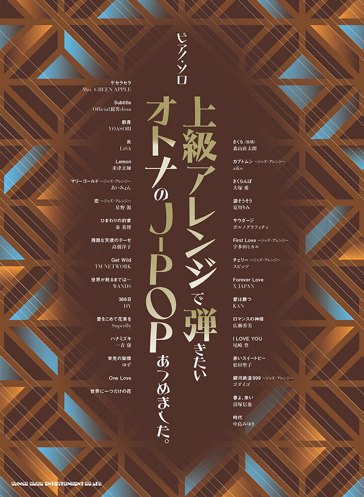 シンコーミュージック ピアノソロ 上級アレンジで弾きたいオトナのJ-POPあつめました。