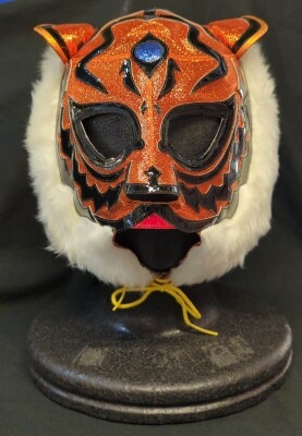 プロレスマスク 【2代目タイガーマスク (オレンジラメ×黒・赤特殊フチ)】 タグなし