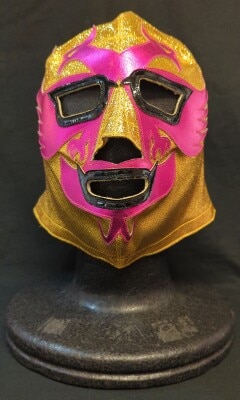 プロレスマスク プエブラ製【ドス・カラス(金ラメ×ピンクメタリック・黒フチ)】 タグなし