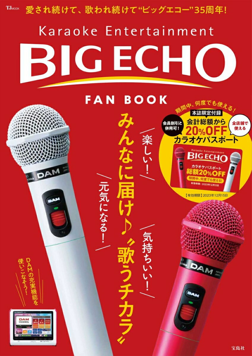 初出店より35周年を迎える、日本最大級のカラオケボックスチェーン“ビッグエコー”のファンブックが誕生!安心・安全、キレイ、全室DAMで高機能、快適な居心地、歌い心地を追求するビッグエコーの魅力と進化を紐解きます! 通信カラオケ「DAM」の徹底解剖や、丁寧かつ迅速な接客の裏側、敏腕店長の密着取材、など、ビッグエコーの“楽しい”を支えるスタッフたちが集結! ビッグエコーを盛り上げる熱い思いを紹介します。また、本誌限定付録のカラオケパスポートは、期間中、何度でも会計総額から20%OFFになる、超お得なカード。会員割引と併用可なのも嬉しいポイントです。行く度にお得で楽しい、夢のようなカラオケパスポートを持って、ビッグエコーに歌いに行こう♪♪【カラオケパスポート有効期限 2023年12月15日】