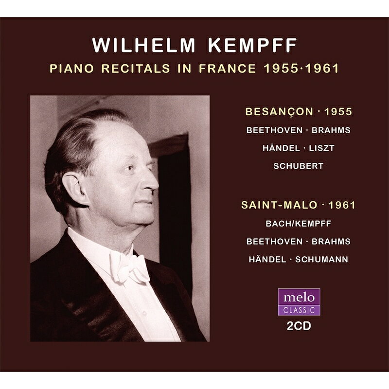 ヴィルヘルム・ケンプ/フランスでのピアノ・リサイタル 1955-196120世紀ドイツの偉大なピアニスト、ヴィルヘルム・ケンプ[1895-1991]がフランスで行ったリサイタル2種のライヴ録音(ただし拍手はまったく入っていません)。 ブザンソンでの録音ではやはりベートーヴェンの作品109が当然のことながら大家の見事な演奏。しかしここで一番の驚きなのはリスト。ケンプはリストをいくらか商業録音で残していますが、『エステ荘の噴水』はこれまでなかったのではないでしょうか。きらめく水の戯れを美しいモノクロ映像で撮影したようなドイツ的幻想味の色濃い演奏は大変魅力的。 サン・マロでの録音はほぼ全部ドイツもの。ひたすらケンプの得意な曲が続く至福の時間が味わえます。なおどちらも冒頭に短い放送アナウンスが収録されています。(輸入元情報)【収録情報】● ヘンデル:調子の良い鍛冶屋● ベートーヴェン:ピアノ・ソナタ第30番ホ長調 Op.109● シューベルト:ピアノ・ソナタ第13番イ長調 D.664● リスト:詩的で宗教的な調べ〜葬送● リスト;巡礼の年 第3年〜エステ荘の噴水● ブラームス:幻想曲集 Op.116 録音:1955年9月2日 ブザンソン(ライヴ)● ヘンデル:シャコンヌ ト長調 HWV.435● バッハ/ケンプ編:シチリアーノ(フルート・ソナタ 変ホ長調 BWV.1031から)● バッハ/ケンプ編:目を覚ませと声が私たちを呼ぶ● ベートーヴェン:ピアノ・ソナタ第18番変ホ長調 Op.31-3● ブラームス:ロマンツェ ヘ長調 Op.118-5● ブラームス:間奏曲 変ロ短調 Op.117-2● ブラームス:間奏曲 ハ長調 Op.119-3● シューマン:交響的練習曲 Op.13 録音:1961年7月21日 フランス,サン・マロ(ライヴ) ヴィルヘルム・ケンプ(ピアノ) モノラル録音 簡易収納紙ケースPowered by HMV