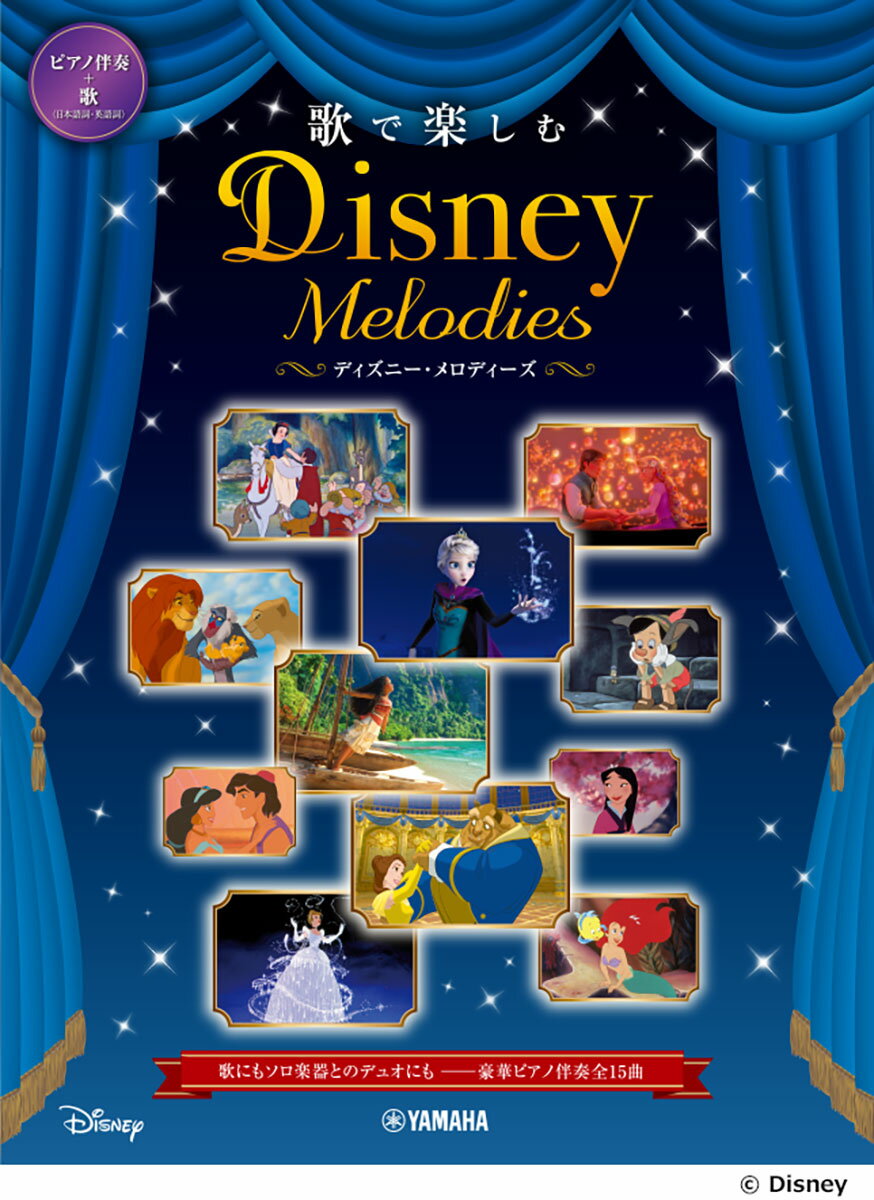 「星に願いを」「夢はひそかに」などの定番曲から、近年のヒット曲「どこまでも 〜How Far I'll Go」「レット・イット・ゴー」まで、時代を超えて愛されてきた人気曲を集めました。日本語歌詞付きの楽譜と、英語歌詞付きのメロディ譜を収載し、ボーカルだけでなくソロ楽器にも活用いただける曲集です。ゴージャスなピアノ伴奏でディズニーの名曲をお楽しみください。※本書は「ピアノ伴奏+歌 上級 歌で楽しむ ディズニー・メロディーズ」(GTP01095146)と同じ内容です。■収載曲 [全15曲を収載][1] レット・イット・ゴー〜ありのままで〜Let It Go / アナと雪の女王編成: 弾き語り/メロディ譜グレード: 上級[2] ホール・ニュー・ワールドA Whole New World / アラジン編成: 弾き語り/メロディ譜グレード: 上級[3] 美女と野獣Beauty and the Beast / 美女と野獣編成: 弾き語り/メロディ譜グレード: 上級[4] 愛の芽生えSomething There / 美女と野獣編成: 弾き語り/メロディ譜グレード: 上級[5] パート・オブ・ユア・ワールドPart of Your World / リトル・マーメイド編成: 弾き語り/メロディ譜グレード: 上級[6] 輝く未来I See the Light / 塔の上のラプンツェル編成: 弾き語り/メロディ譜グレード: 上級[7] チム・チム・チェリーChim Chim Cher-ee / メリー・ポピンズ編成: 弾き語り/メロディ譜グレード: 上級[8] 星に願いをWhen You Wish Upon a Star / ピノキオ編成: 弾き語り/メロディ譜グレード: 上級[9] 夢はひそかにA Dream Is a Wish Your Heart Makes / シンデレラ編成: 弾き語り/メロディ譜グレード: 上級[10] 愛を感じてCan You Feel the Love Tonight / ライオン・キング編成: 弾き語り/メロディ譜グレード: 上級[11] リフレクションReflection / ムーラン編成: 弾き語り/メロディ譜グレード: 上級[12] どこまでも 〜How Far I'll Go〜How Far I'll Go / モアナと伝説の海編成: 弾き語り/メロディ譜グレード: 上級[13] カラー・オブ・ザ・ウィンドColor of the Wind / ポカホンタス編成: 弾き語り/メロディ譜グレード: 上級[14] ララルーLa La Lu / わんわん物語り編成: 弾き語り/メロディ譜グレード: 上級[15] メドレー いつか王子様が〜ベラ・ノッテ〜ホール・ニュー・ワールドSomeday My Prince Will Come〜Bella Notte〜A Whole New World / 白雪姫〜わんわん物語〜アラジン編成: 弾き語り/メロディ譜グレード: 上級