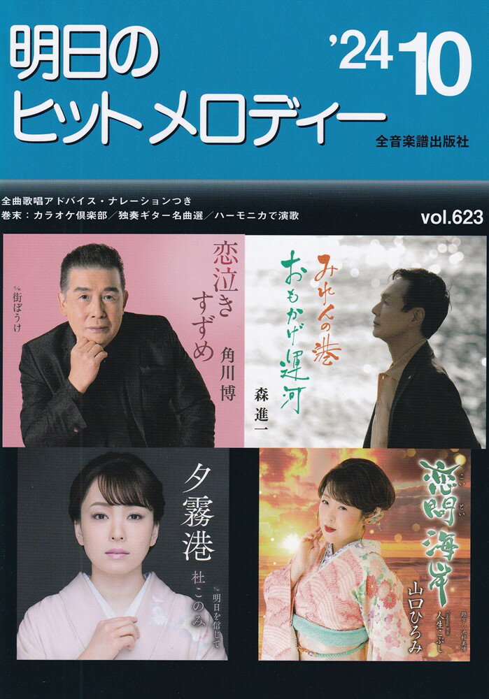 演歌・歌謡曲の最新曲をいち早く集めたカラオケファンのための最新曲集です。全曲に前・間・後奏、オブリガート、テンポ表示、リズム型、冒頭ナレーションと歌唱アドバイスまで入った完璧な楽譜になっています。巻末には楽譜が読めなくてもタブ譜でヒット曲が弾ける『独奏ギター名曲選』とハーモニカの独奏で演歌を楽しめる『ハーモニカで演歌』、分かりやすくて丁寧な指導で新曲が唄える『カラオケ倶楽部』といった色々なコーナーを収録。音楽マメ知識付きです。【新曲】●金沢望郷歌2024/松原健之●恋問海岸/山口ひろみ●恋泣きすずめ/角川 博●こんにゃく野郎/黒川真一朗●千住ブルース/渥美二郎 梶原あきら●妻よ…ありがとう/山本譲二●みれんの港/森 進一●夕霧港/杜このみ●サランへ わたしのいい人/半田浩二●今もヨコハマ/門松みゆき●ザンザ岬(ニューバージョン)/入山アキ子●泣けばいい/二見颯一●似たものどうし/西川ひとみ&一塁あやの●願い星/おおい大輔●夢の旅路/金村ひろし【B面コーナー】●酒連々/みずき舞●母春秋/石原詢子●マンハッタン メリークリスマス/秋元順子【独奏ギター名曲選】●人それぞれに/中村美律子【ハーモニカで演歌】●雨の港駅/花咲ゆき美【カラオケ倶楽部】●海を渡る蝶/キム・ヨンジャ●男船/細川たかし●風花岬/石原詢子●さらば桜島/彩青●白神山地/長山洋子●磐越西線 津川駅/永井みゆき●わかれざけ/みずき舞
