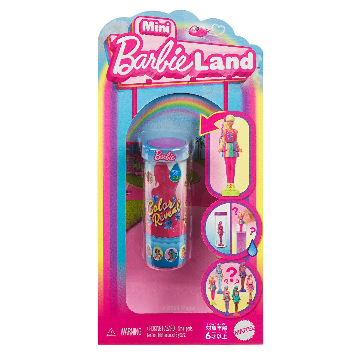 【内容】ピンクのコーティングがついたマイクロドールを水に入れたケースに入れて振ると、約3.81cmのバービーが出てきます。バービーのカラーリビールシリーズをモデルに作られたマイクロドールは全部で6種類、水に入れてコーティングをはがすまで、何が出てくるかわからないサプライズトイ!マイクロドールにはハート型の台座がついており自立し、座らせることもできるので、同じシリーズののりものやハウスと一緒に遊べます。ミニバービーランドの他ののりものやハウス、マイクロドールを集めて自分のミニバービーランドを作ろう!【原産国】中国 【対象年齢】6歳〜【ごっこあそび】ごっこ遊びを通じて、お子様の想像力を育てることで、You Can Be Anything (何にだってなれる)というバービーが届けるメッセージの通り、想像力から将来の夢を描き、将来の“可能性”を広げるサポートをします。【Brandについて】世界中で遊ばれているファッションドール。【バービー:Barbie】バービーは世界中で愛されている着せ替え人形(ドール)です。2023年にはグレタ・ガーウィグが監督しマーゴット・ロビーがバービーを演じる、映画『バービー』もついに公開!大人がおしゃれなコレクションとして買い求めるバービーコレクターラインも充実しており、世代を超えて、女性の夢をかなえるファッションドールとして愛されています。バービーは約200種類の職業や、インスピレーションを与える人物像、数えきれないほどのファッションやアクセサリーを通して女の子の”可能性”を提示してきました。女の子の”可能性”を広げる"You Can Be Anything”(何にだってなれる!)のメッセージを発信し、この取り組みを続けていきます。【プレゼントに最適】お誕生日、クリスマスプレゼント、入園・入学祝いなど記念日でのプレゼントにぴったりです。【対象年齢】:6歳以上【商品サイズ (cm)】(幅×高さ×奥行):7.6×15.2×2.9