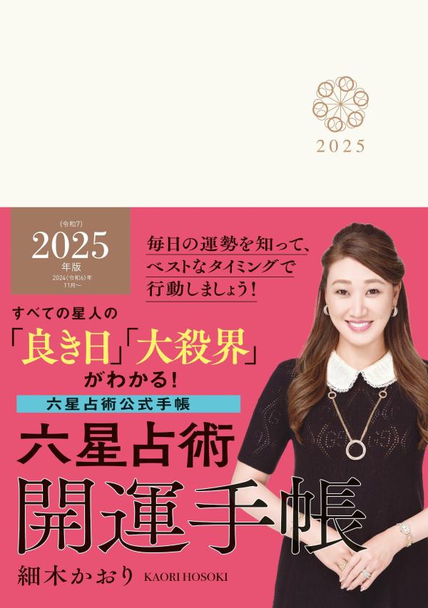 【 2025(令和7)年の「よき日」「大殺界」がこの手帳1冊ですべてわかる! 】「頑張っているのになぜかうまくいかない……」と思っている人はいませんか? それは毎日の運気のリズムを知らないから。誰にでも運気の良い悪いが平等にあるので、それを把握して良い運気のリズムに乗ることが大切なのです。この「開運手帳」で毎日の運気をチェックして、今年こそ思い通りの人生を歩んでみませんか?【 開運手帳はここがすごい! 】POINT1●毎日の運勢がはっきりわかる!「運気が良い時には積極的に行動し、運気が下がるときには休んで次に備える」。これこそが、六星占術を活用した豊かな人生を送る極意です。自分はいつ運気が良くて、いつ停滞するのかを分かりやすくデザインしました。自分の運気のリズムを把握すれば、生まれ持った才能や実力を思う存分に発揮でき、思い通りの人生が実現できるのです。POINT2●『六星占術』のエッセンスをギュッと凝縮脅威の的中率で累計1億冊以上を売り上げた大人気の占い本『六星占術によるあなたの運命』をギュッと凝縮しました。手帳と書籍をドッキングしたお得な1冊になっています。POINT3●気になる人の詳しい基本性格と相性がわかるこの開運手帳にはすべての星人の詳しい基本性格と相性を掲載しました。最近出会った人、職場の人間関係、気になる異性の性格と相性などをすぐチェックできるので、対人関係の悩みも一気に解決できます!POINT4●自分はもちろん、周りの人の運勢もわかる自分の運勢はもちろん、周りの人の運勢も調べることができます。星人の割り出し方法も掲載されているので、友達とのティータイムや職場の休憩時間など、この手帳をコミュニケーションツールとして活用してください。POINT5●書き込みスペースが充実毎日のスケジュールをはじめ、1冊の中にたくさん書き込めるスペースを作りました。パッとひらめいたこと、忘れたくないことなどを書き込めるノートとしても活用できます。日記帳としてもアレンジ可能です。あなた自身、家族、恋人、仕事関係など気になる人の運勢もすべてわかる、この開運手帳をうまく活用して、2025年こそ幸せな人生を手に入れましょう!