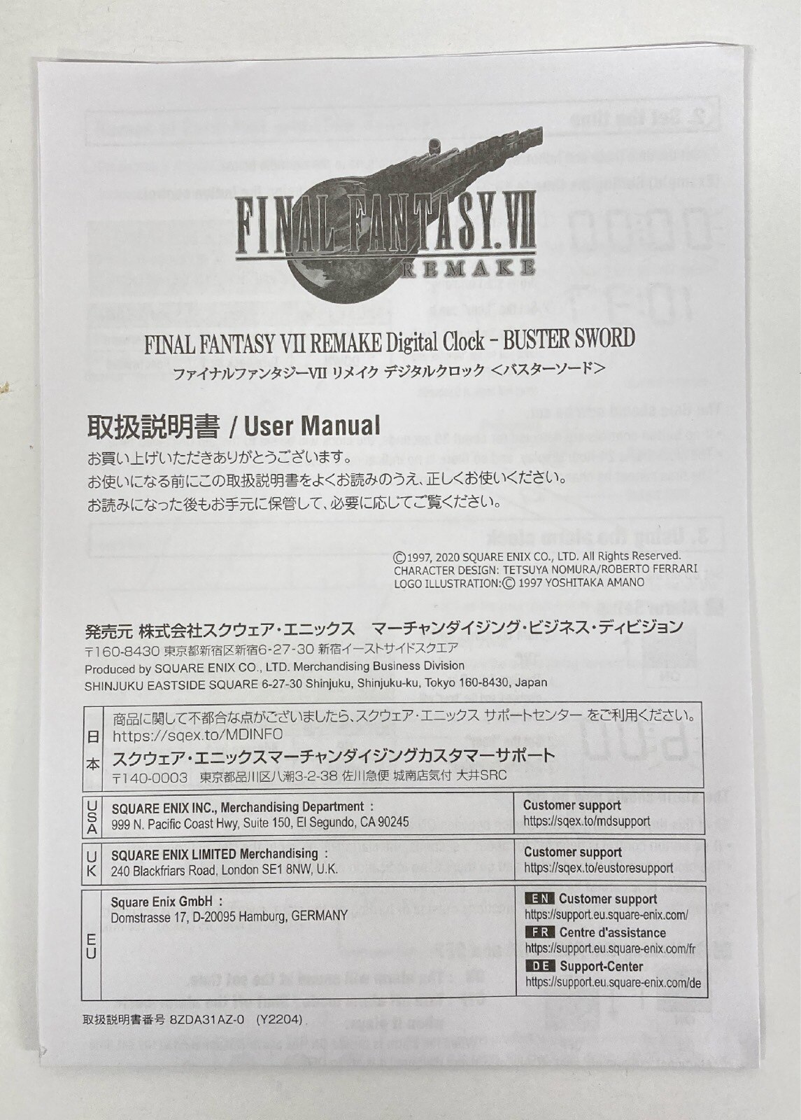 ファイナルファンタジー7 リメイク デジタルクロック バスターソード USB欠品