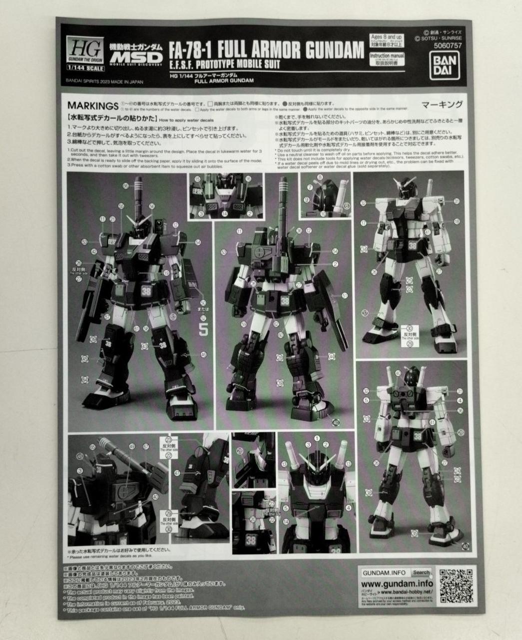 HG 1/144 FA-78-1 フルアーマーガンダム 機動戦士ガンダム MSD
