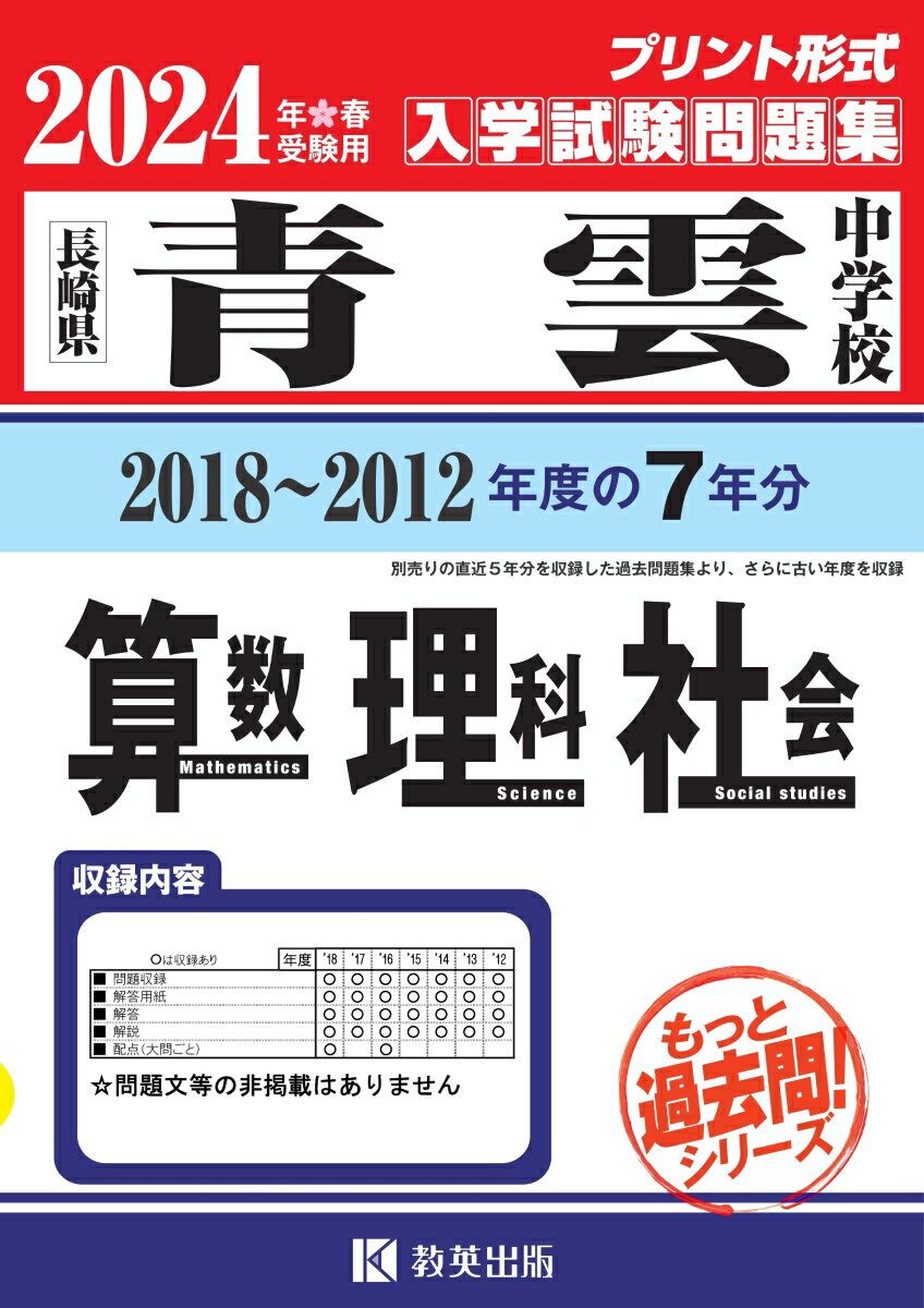 青雲中学校算数・理科・社会(2026年春受験用)