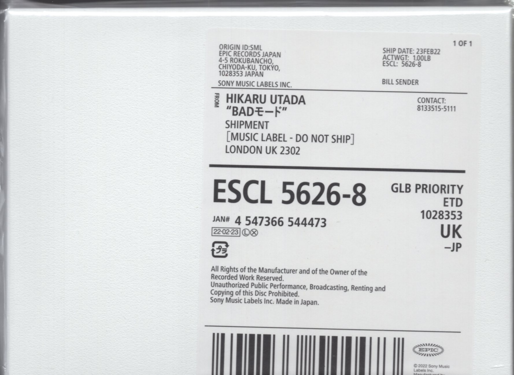 宇多田ヒカル/SINGLE COLLECTION vol.1:CD見本盤