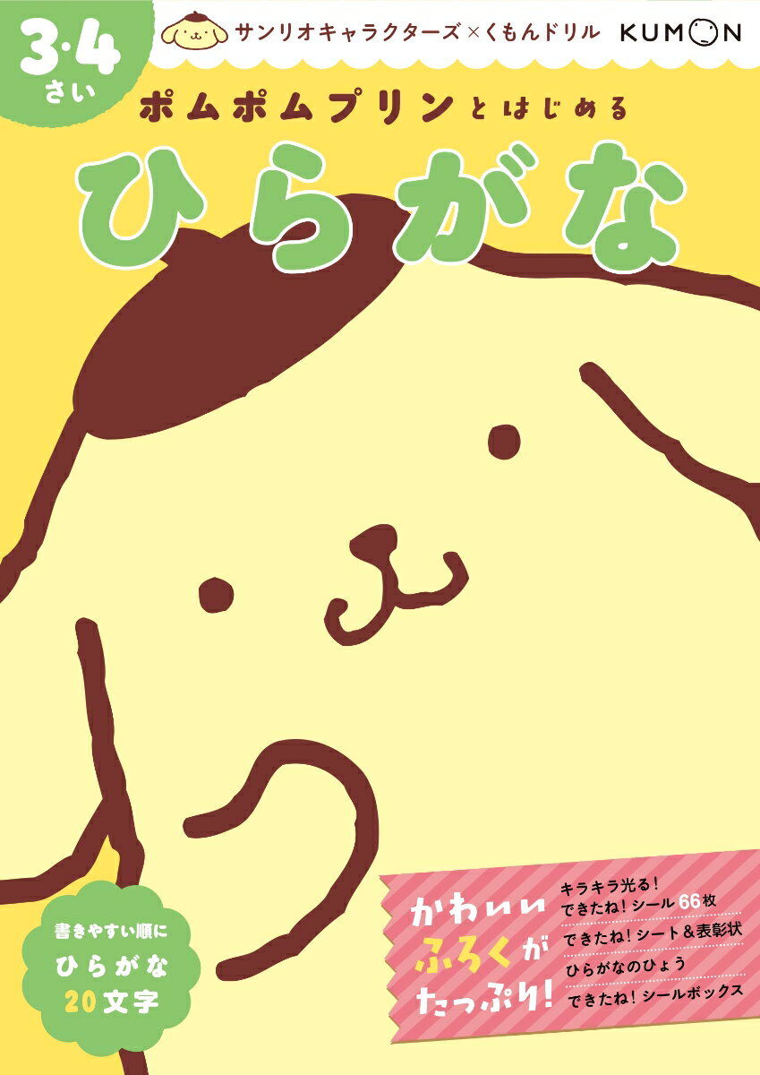 ポムポムプリンと一緒にひらがなのおべんきょうをはじめよう!ポムポムプリンと仲間たちがページいっぱいに登場して学習を応援してくれる、ひらがなに興味をもちはじめた3・4歳のお子様にぴったりのドリル。★プリンくんのイラストで楽しむ運筆練習やめいろなどのワークに取り組みながら、書きやすいひらがな20文字を学習できます。★幼児向けドリル教材のパイオニア、「くもんの幼児ドリル」のノウハウを活用しているから、学びやすさ、身につきやすさもバッチリです。★キラキラできたねシール、表彰状、あいうえお表、ミニ紙工作と、かわいいふろくがたっぷり!