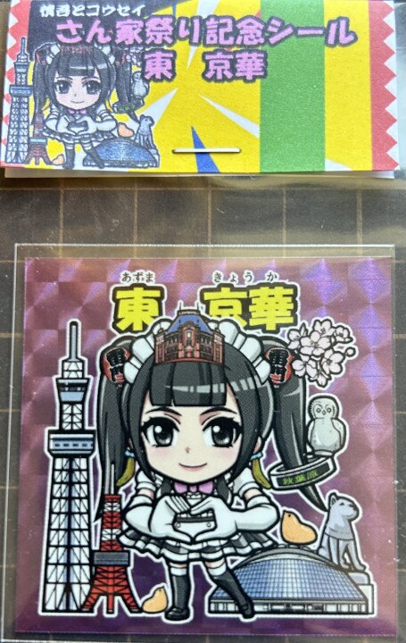 | 東京をコンセプトにした少女シール。 『東 京華』 48m×48m 業者オフセット印刷。 台紙付き、シールスリーブ入り。 裏書あり。 |