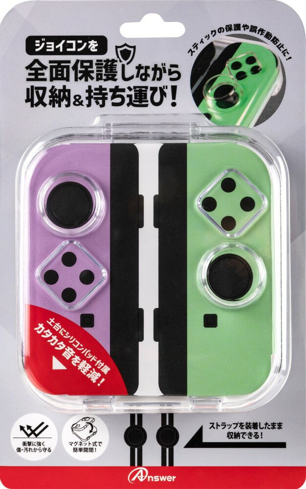 ジョイコンをストラップを装着しまま保管・収納可能!磁石を使ったロック機構でラクラク開閉!片付けや持ち運びに最適!●ジョイコンをストラップつけたまま保管可能!ジョイコンをストラップつけたまま保管可能。持ち運びにも便利で、ジョイコン本体にキズが付かないように守ります。●磁石を使ったロック機構!磁石を使用したロック機構を採用しており、開閉もラクラクおこなえます。●シリコン素材のクッション付き!ジョイコンにキズが付かないように背面にシリコン製のクッションを付属しております。これによりキズ防止だけでなく、持ち運ぶ際にカタカタと音が鳴るのを軽減します。●平置きも可能!底面が平らになっている為、机の上などに平置き可能です。