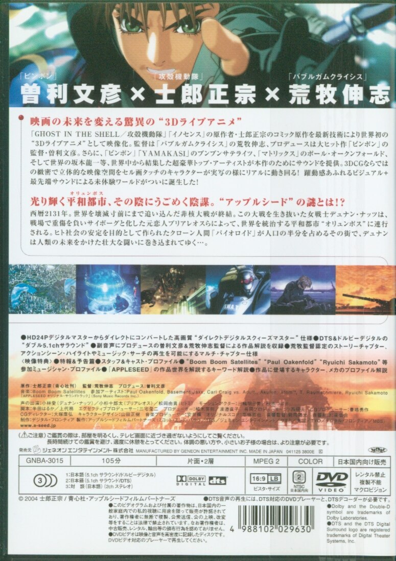 ジェネオンエンタテインメント アニメDVD APPLESEED(通常版)