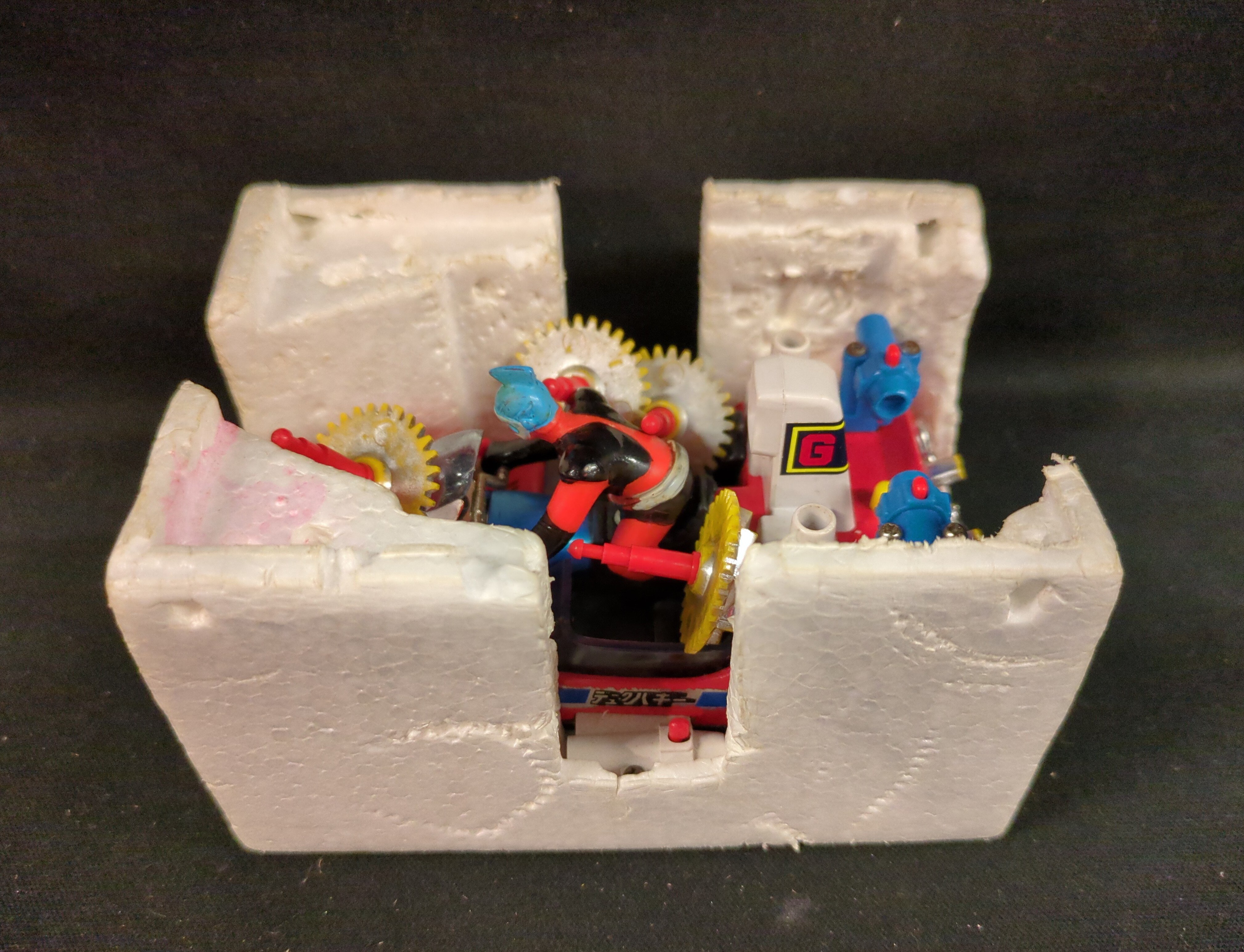 商品状態: 本体イタミ大、メッキイタミ大、箱イタミ大、箱シール貼り付きあり、発泡スチロールイタミ、紙類欠、パーツ欠品あり(パーツは画像に載せているもので全てとなります)