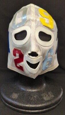 プロレスマスク【スペル・デルフィン(黒・パールホワイトハーフ×赤ラメ・銀・紫ホロラメ・銀ホロラメ・白・黒フチ)】タグなし 本人使用 サイン入り