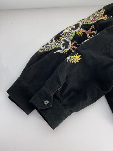 ×TIM LEHI/20AW/ドラゴン刺繍カーディガン(薄手)/L/コットン/BLK