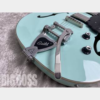 頑丈なアーチトメイプル・トップ、バック、サイドは、ホロウ・ボディ特有の空気感のあるトーンで、明るい倍音とはっきりとした低音を持っています。629mmスケールと薄い “U “ネック・プロファイルは、速くスムーズな演奏を可能にし、プレミアム・ギルド・ヴィンテージ18チューナーとTune-o-マチック・ブリッジがチューニングの高い安定感を実現。