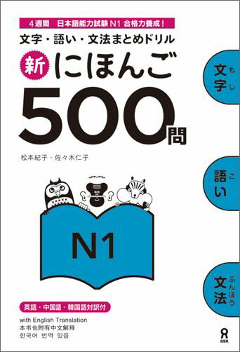 JLPT(日本語能力試験)の文字・語彙・文法の対策ドリル本のロングセラー『にほんご500問』シリーズの改訂版。 1ページに三種類のドリルが一問ずつ。合計500問で4週間完成。自習に最適! 改訂のポイント; ■レベル分けが細かく! 3レベル(上級・中級・初級)⇒4レベル(N4-N5・N3・N2・N1) ■N4-N5,N3がベトナム語対応に! N1:英語・中国語・韓国語 N2:英語・中国語・韓国語 N3:英語・ベトナム語 N4-N5:英語・ベトナム語 ■判型がコンパクトになって使いやすく! A5判→四六判