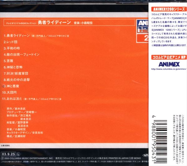 日本コロムビア アニメCD 勇者ライディーン オリジナルサウンドトラック