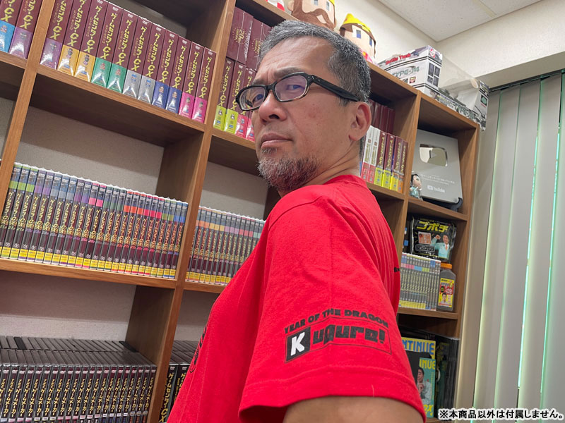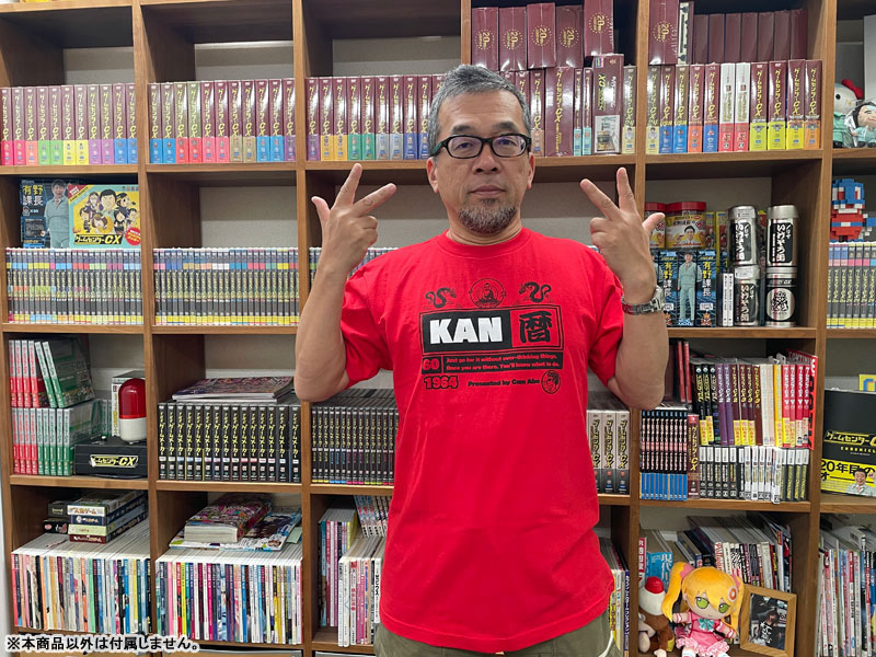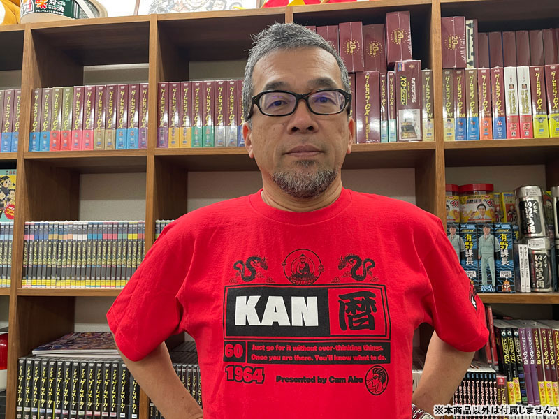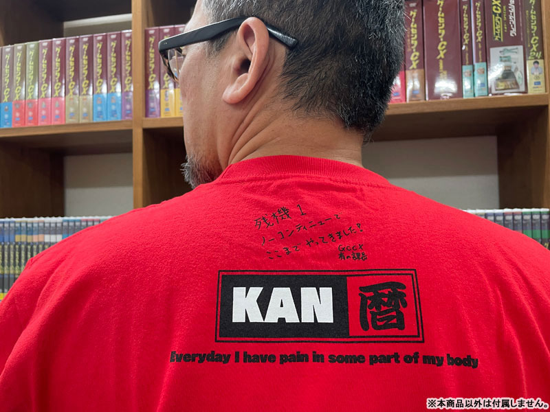 2024年10月に還暦を迎えた菅Pを祝う記念Tシャツ。Tシャツのデザインを手がけたのは盟友のカメラ阿部!有野課長からの手書きメッセージもプリントされています。