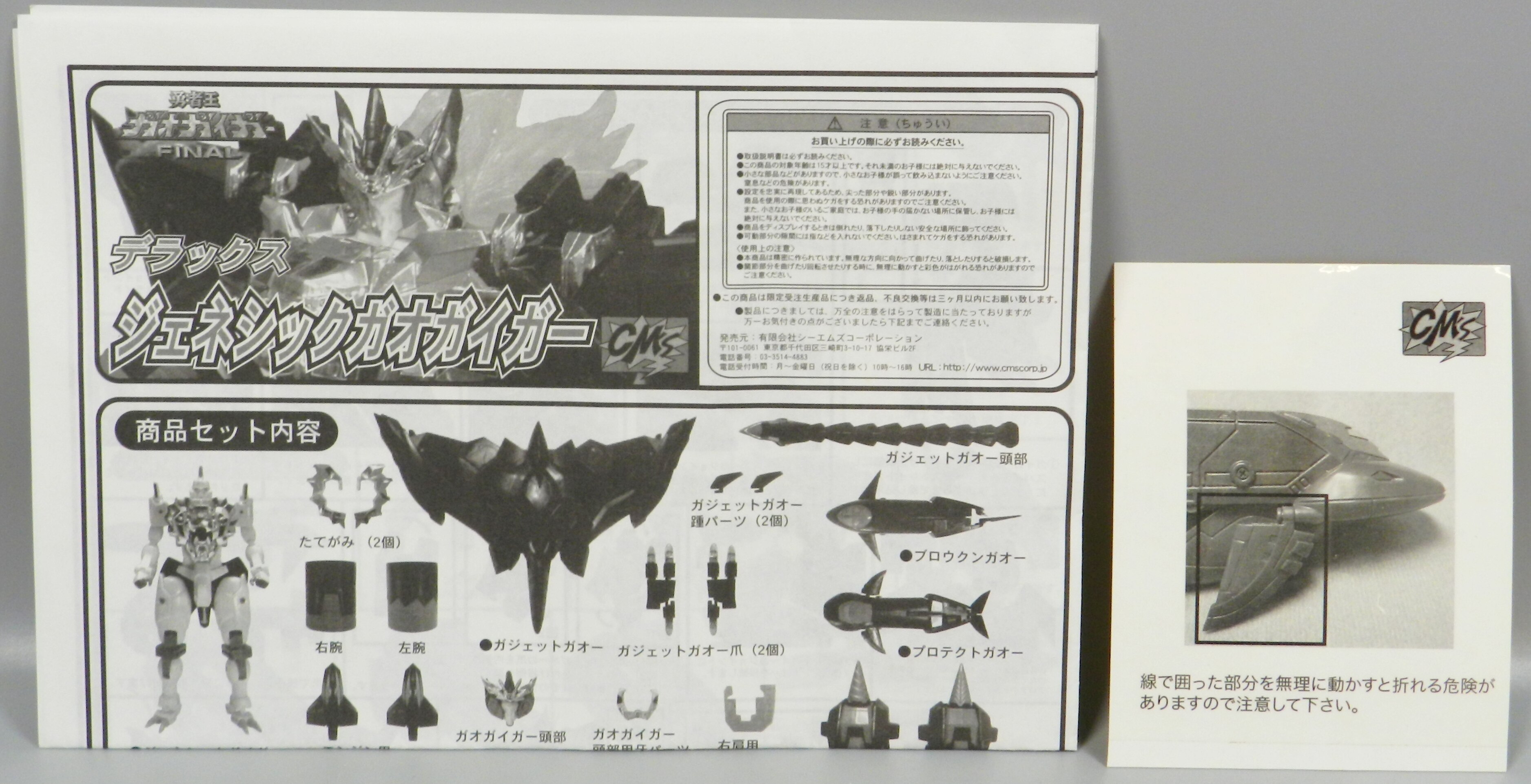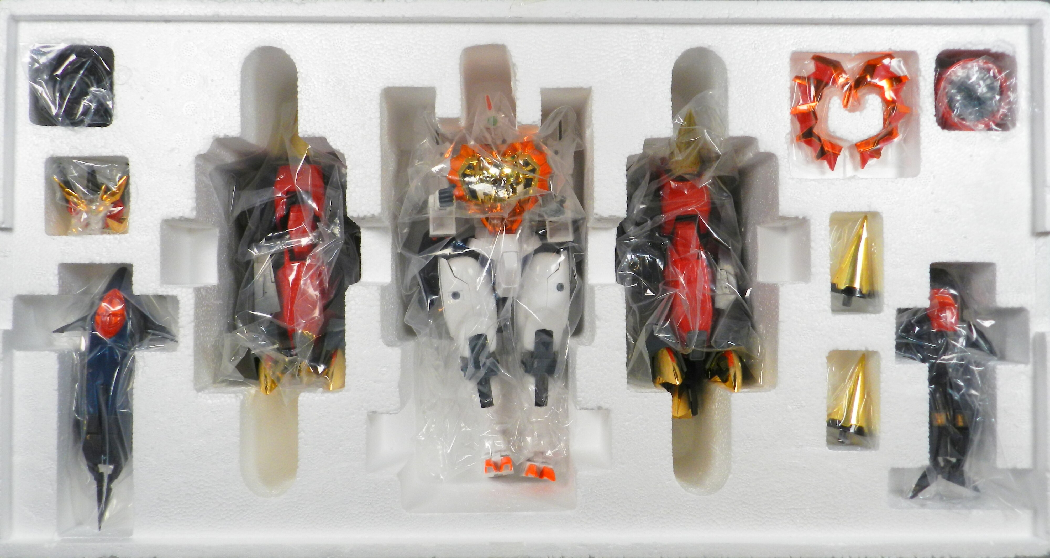 商品状態: 開封使用。パッケージいたみ大。破れ。潰れ。接着はがれ。発泡スチロール割れ。本体いたみ大。ガイガー首パーツ緩み大。ストレイトガオー破損有り。